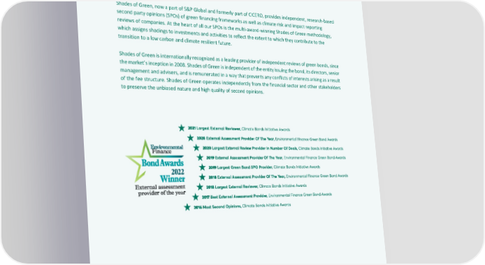 ‘Second Opinion’ on Balder ’s Green Financing Framework 15 Appendix 2 : About CICERO Shades of Green Shades of Green, now a part of S&P Global and formerly part of CICERO , provides independent, research - based second party opinions (SPOs ) of green financing frameworks as well as climate risk and impact reporting reviews of companies. At the heart of all our SPOs is the multi - award - winning Shades of Green methodology, which assigns shadings to investments and activities to reflect the exte nt to which they contribute to the transition to a low carbon and climate resilient future . Shades of Green is internationally recognized as a leading provider of independent reviews of green bonds, since the market’s inception in 2008. Shades of Green is independent of the entity issuing the bond, its directors, senior management and advisers, and is remunerated in a way that prevents any conflicts of interests arising as a result of the fee structure. Shades of Green operates independently from the financ ial sector and other stakeholders to preserve the unbiased nature and high quality of second opinions .